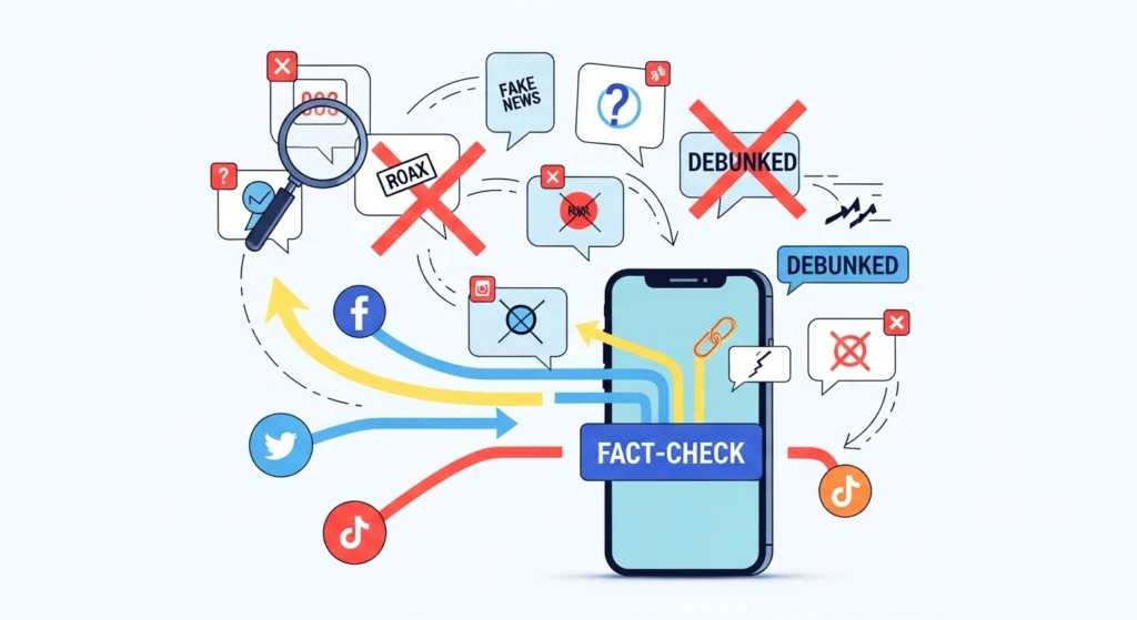 Cada plataforma de mídia social apresenta desafios únicos para o fact-check. No Facebook, a desinformação frequentemente se espalha através de páginas com nomes genéricos que imitam veículos de notícias ou através de grupos fechados onde alegações falsas circulam sem contestação. O sistema de compartilhamento do Facebook amplifica rapidamente conteúdo viral, independentemente de sua veracidade. Use as ferramentas de busca da plataforma para verificar se uma história está sendo amplamente compartilhada e verifique os comentários, onde frequentemente encontrará pessoas apontando inconsistências.